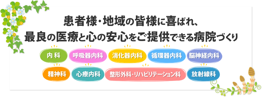 内科・呼吸器内科・消化器内科・循環器内科・脳神経内科・精神科・心療内科・整形外科・リハビリテーション科・放射線科 |